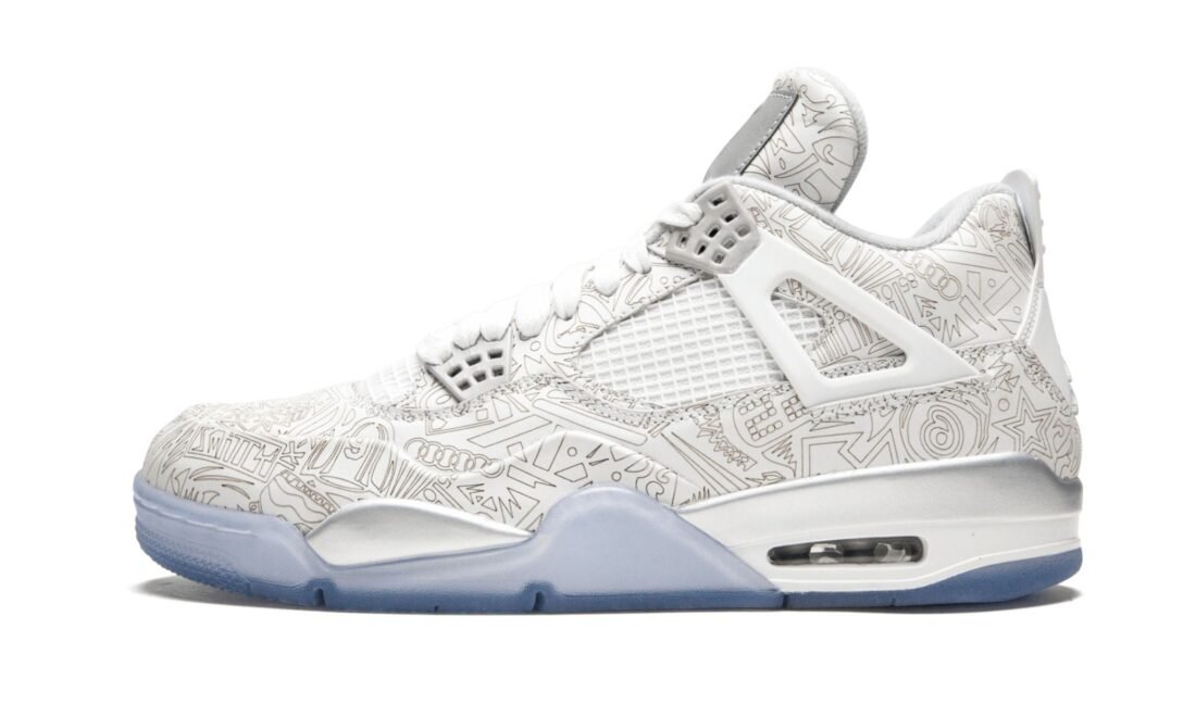 Celebrating Jordan Brand’s 30th anniversary, this 2015 release of the Air Jordan 4 features a pristine white leather construction with reflective silver accents and a special lasered graphic across the upper. An icy blue outsole further accentuates the special celebratory colorway.