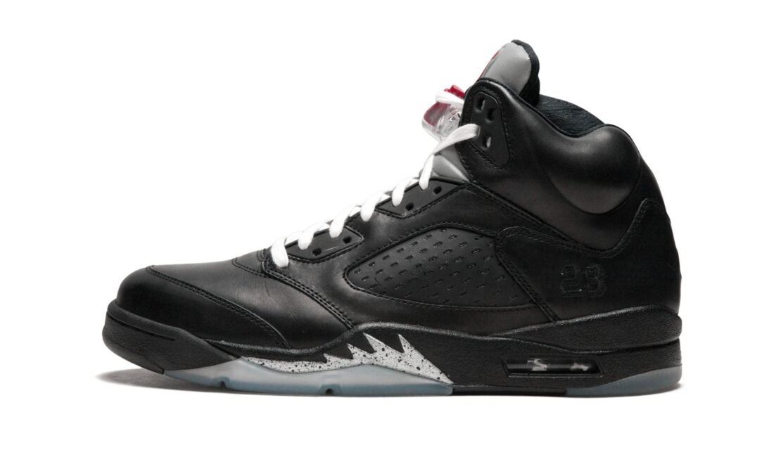 Very limited and constructed with impeccable quality, this is the Air Jordan 5 from the BIN 23 series of premium Air Jordans. Similar to the original “Blacku002FMetallic” colorway, the shoe features a soft black leather upper metallic silver accents and white laces.