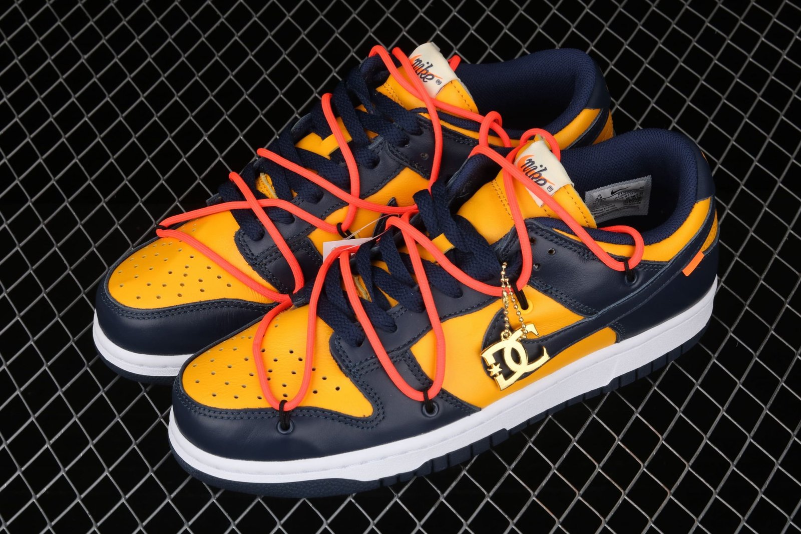 Virgil Abloh pays homage to skate culture’s adoption of 1980’s Nike Basketball silhouettes with the Nike Dunk Low Off-White Michigan, now available on StockX. When Nike unveiled the Dunk as the centerpiece of their Nike College Color’s program in 1985, seven different colleges were represented in the first colorways offered, with Michigan was one of the first schools.